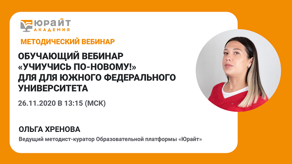 26 ноября 2020 г. в 13:15 (МСК) образовательная платформа «Юрайт» приглашает преподавателей и сотрудников Южного федерального университета на обучающий вебинар "УчиУчись по-новому!".